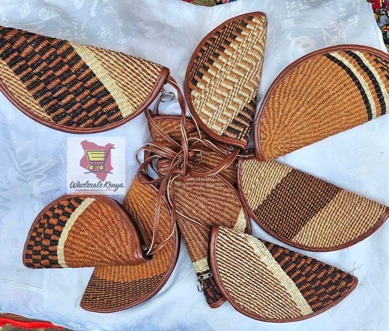 A pack of 10 Handwoven Sisal Leather half moon clutchbags