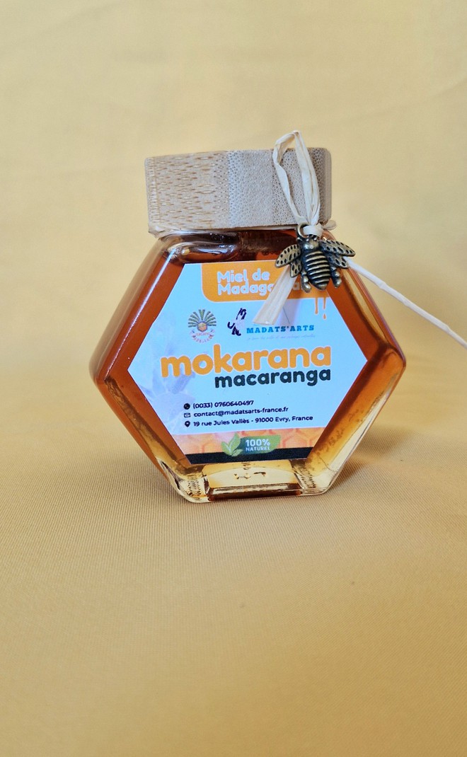 Découvrez notre miel de Mokarana, un trésor endémique du sud-Sud-est de Madagascar - Manakara. Le mokarana est une plante endémique de la région d'Anosy, au sud de Madagascar. On ne la retrouve nulle part ailleurs. Cet arbre, pouvant mesurer jusqu'à 6 mètres de haut, dissimule sous ses grandes feuilles des bourgeons dont les abeilles raffolent. Ce miel de mokarana, réalisé à la main, est incomparable. Offrez-vous une expérience gustative unique avec ce miel onctueux et parfumé, rappelant l'abricot. Sa saveur douce et délicate, ainsi que ses notes fruitées, en font un délice dès le petit-déjeuner. 🚫 AUCUN ADDITIF: ne contient aucun conservateur ni additif chimique 🌿 Miel Pur aux Bienfaits surprenants 🩷 Goût Fruité 🍯 Texture Onctueuse #MielMalgache #MieldeMadagascar #MieldeMokarana #MieldeMacaranga #LaGourmandise #Mielonctueux #CadeauOriginal #PassionCulinaire #DéveloppementDurable #Ecoresponsable