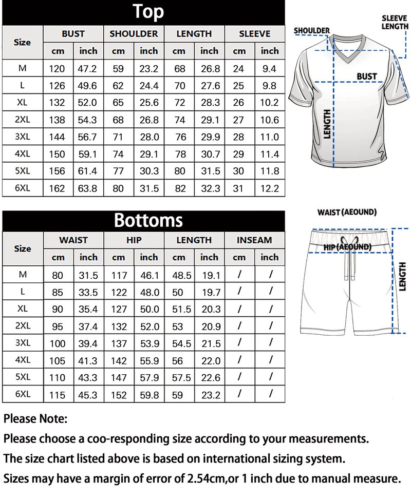 | 5XL | 45.7" - 48"116 - 122 | 38.6" - 41.7"98 - 106 | 48" - 50.4"122 - 128 | 50 | 22 | 18 |