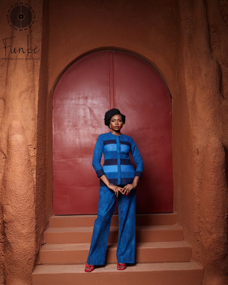 Fait d’un agencement harmonieux du pagne tissé et de coton teinté par l’art de l’indigo, cet ensemble est authentique. Il est très élégant et vous donne un port de reine.