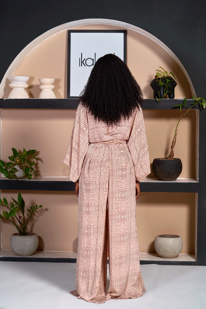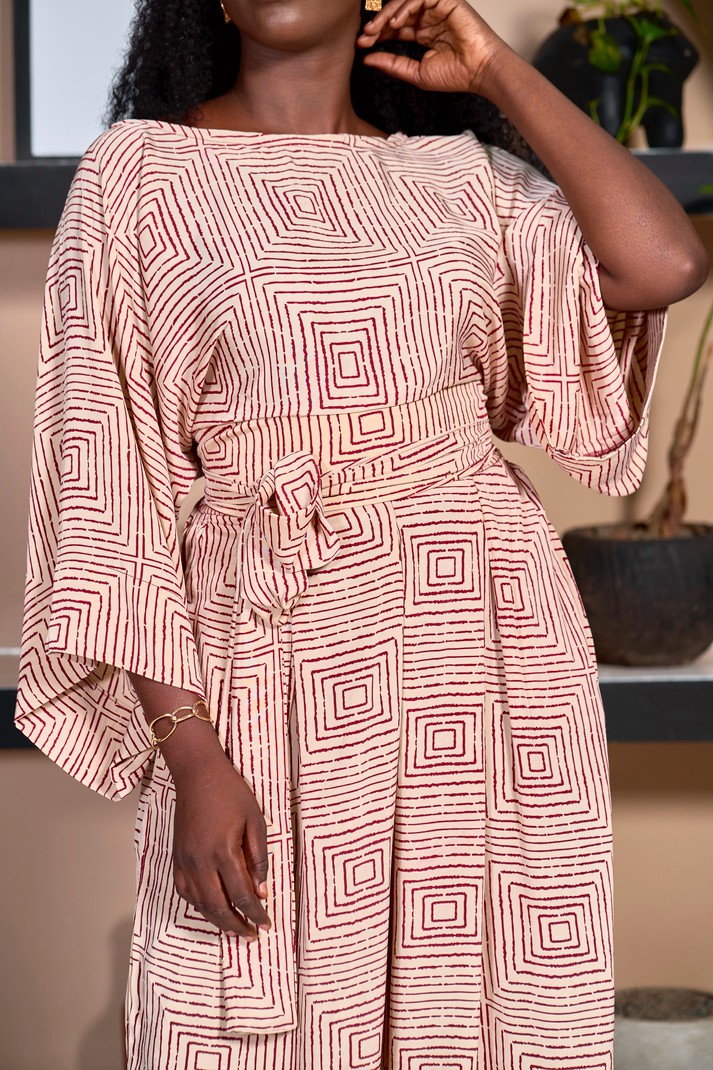 L’ensemble top Titi et le pantalon Tandou palazzo en bogo beige bordeaux . Très agréable, fluide et confortable