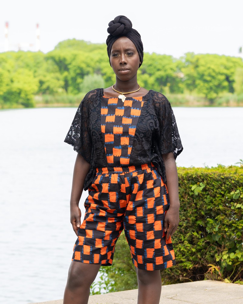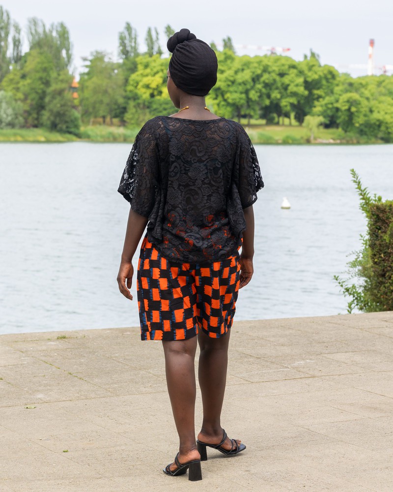 Cet ensemble deux pièces allie avec élégance tradition et modernité. Il se compose d’un short taille élastique souple en wax aux motifs vibrants, structuré pour sublimer la silhouette tout en offrant un confort optimal.