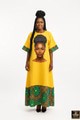 Make a statement in this radiant yellow African print maxi dress, beautifully designed for elegance and comfort. The gown features a stunning artistic portrait on the front, complemented by vibrant green and blue Ankara patterns along the sleeves and hemline. Its flowing silhouette and wide sleeves give it a relaxed yet regal feel—perfect for cultural events, celebrations, or making an impression at any special occasion.