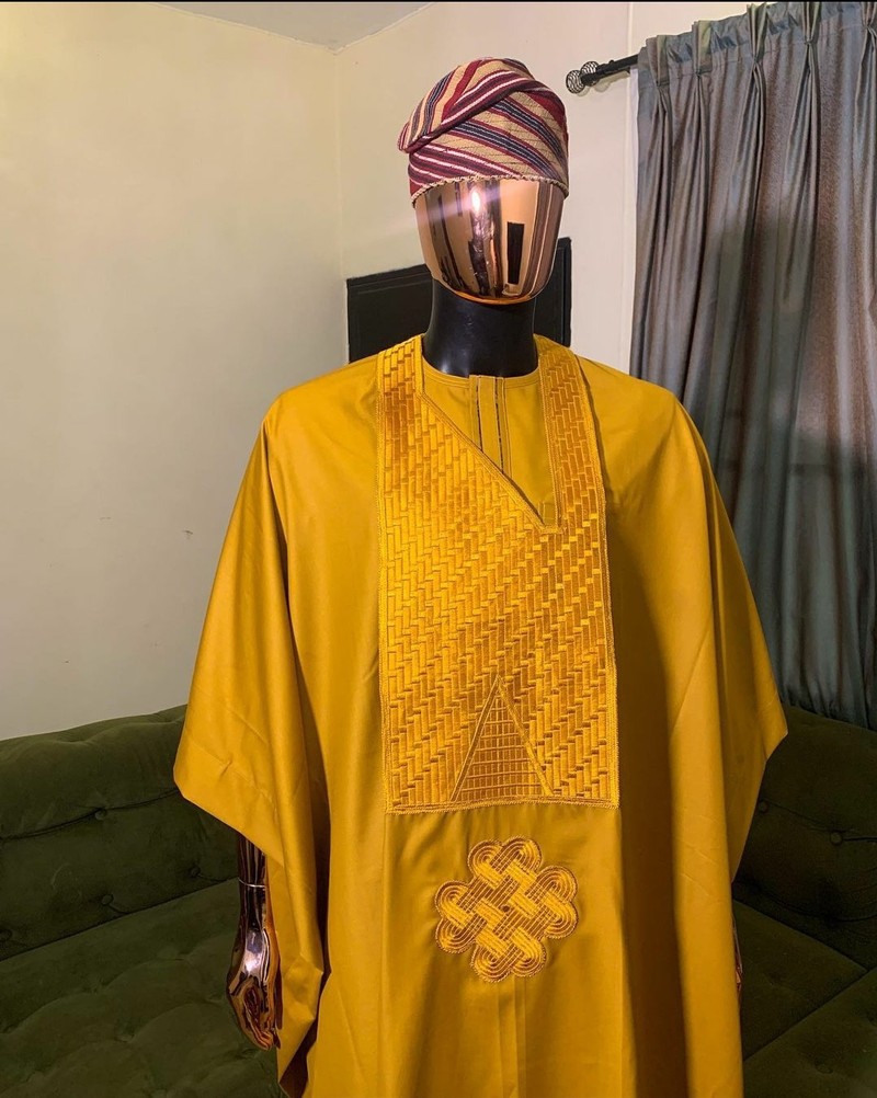 3 pieces agbada sets with a matching pants and a customized hat. You can get the hat customized to your preferred size.. Delivery is within 7 working days