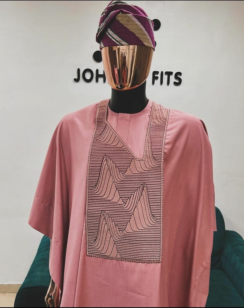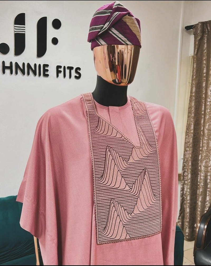 3 pieces agbada sets with a matching pants and a customized hat. You can get the hat customized to your preferred size.. Delivery is within 7 working days