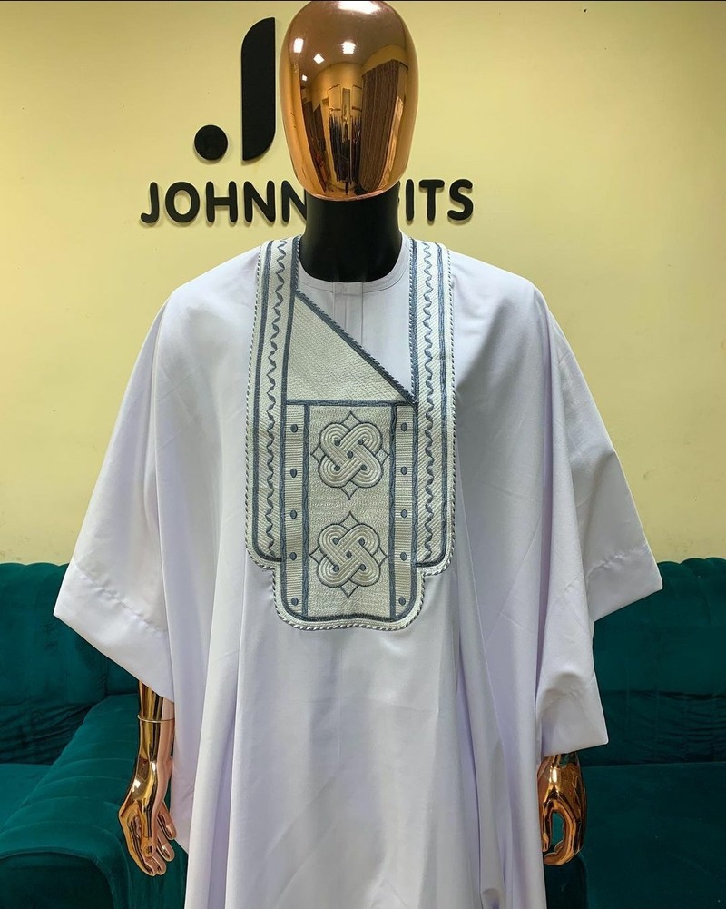 3 pieces agbada sets with a matching pants and a customized hat. You can get the hat customized to your preferred size.. Delivery is within 7 working days