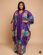 This stunning floor-length kaftan is a masterpiece of vibrant artistry, featuring a rich, multi-colored batik marble print in shades of deep purple, emerald green, and earthy ochre. Meticulously crafted from premium, high-quality polished cotton, the fabric provides a luxurious sheen and a smooth, breathable drape that ensures both comfort and a regal presence. The design is anchored by a structured purple vertical panel along the front, detailed with elegant tonal stripes and a unique set of colorful decorative buttons at the V-neckline, which perfectly complements the sophisticated gold chain wristwatch seen here. This majestic piece is an ideal choice for grand celebrations, upscale cultural ceremonies, or as a high-fashion statement for formal garden parties and evening receptions where you want to radiate effortless elegance and cultural pride.