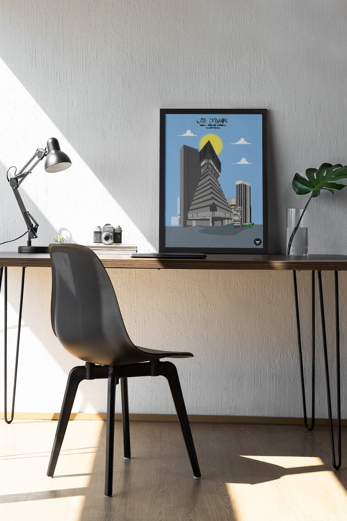Apportez une touche d’élégance architecturale et d’authenticité culturelle à votre décoration avec cette affiche murale illustrant La Pyramide "du quartier des affaires" située au plateau, monument iconique du patrimoine Ivoirien. Ce visuel soigneusement composé met en valeur la force graphique et symbolique de ce bâtiment au style rétro-futuriste, devenu un repère visuel incontournable dans la capitale économique de la Côte d’Ivoire. Un choix raffiné pour celles et ceux qui souhaitent sublimer leur intérieur avec une œuvre à la fois artistique, historique et contemporaine.