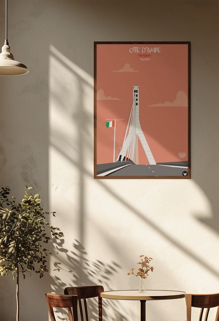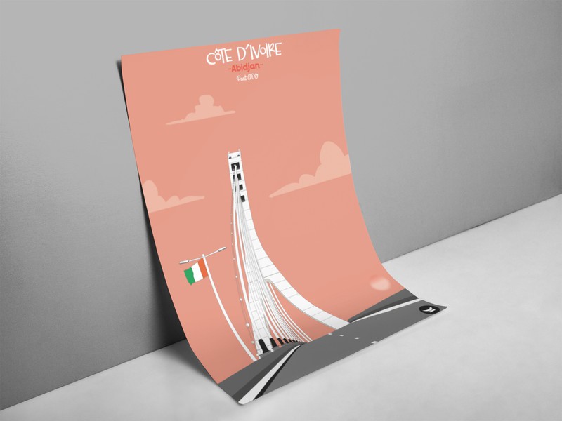 Apportez une touche contemporaine et architecturale à votre intérieur avec cette affiche artistique du Pont ADO, symbole emblématique du renouveau urbain d’Abidjan. Cette œuvre visuelle capture l’élan de modernité et de dynamisme qui façonne la Côte d’Ivoire d’aujourd’hui, entre innovation et esthétique. Idéale pour enrichir votre décoration d’un visuel audacieux et élégant, cette affiche incarne à la fois force, mouvement et évolution dans l’esprit de la ville.