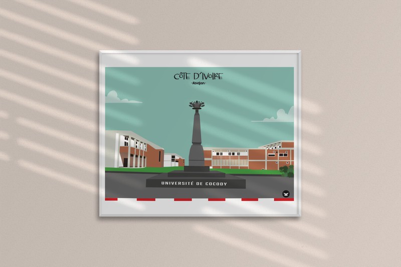 Célébrez la culture intellectuelle et le patrimoine Ivoirien avec cette affiche murale de l’Université de Cocody, l’un des établissements les plus emblématiques d’Abidjan. À la fois symbole de savoir, d’innovation et de transmission, cette œuvre rend hommage à ce lieu qui incarne le cœur académique de la Côte d’Ivoire. Un visuel fort pour enrichir votre intérieur d’une touche de mémoire collective, de fierté nationale et d’esthétisme graphique.