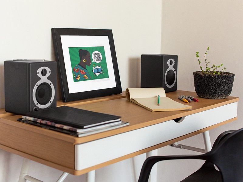 Collection : Portra x Afro Pop « Sista Joh », c'est la grande sœur qu'on respecte. Entre assurance, intensité et flair urbain, elle débarque dans ta déco avec un regard qui parle fort et un style qui ne passe jamais inaperçu. Cette affiche murale BD pop art mélange attitude féminine forte et graphisme vif pour un rendu aussi artistique que piquant. Pensée comme une pièce de caractère, « Sista Joh » impose sa présence sur ton mur — que tu sois team boho, street ou contemporain. Caractéristiques : • 🖨️ Impression Giclée haut de gamme – 12 couleurs pigmentaires • 📜 Papier mat ou lustré – finition qualité musée • 📐 Grammage 250 g/m² – support rigide et pro • 🌱 Certifié FSC – respect de l'environnement • 🖼️ Contrastes riches, tracés nets, rendu vibrant • 📦 soigné : à plat ou roulé selon format • Disponible à l'achat en format A3 : 29,7 x 42 cm. Pourquoi vous allez l'adorer : ✔ Une affiche féminine avec du crâne et du style ✔ L'univers BD afro pop revisité avec personnalité ✔ Une déco qui revendique force et esthétique ✔ Parfait pour personnaliser un mur avec punch 📌 Remarque importante : 🖼️ Affiche vendue sans cadre. Les images présentées avec encadrement sont fournies à titre de suggestion de mise en scène.