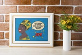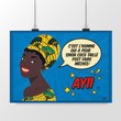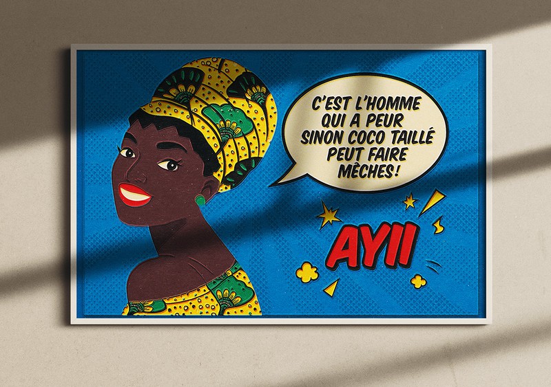 “Tantie Mado”, c’est la matriarche moderne, élégante et piquante. Une femme debout, toujours apprêtée, et qui a toujours le dernier mot. Cette affiche murale BD pop art mêle humour, style et puissance féminine dans une mise en scène graphique haute en couleur. Portra x Afro Pop lui rend hommage à travers une illustration aussi expressive que stylisée, parfaite pour une déco qui a du répondant.