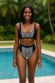 Get ready to turn heads in our African Print Bikini! Designed with a bold, black and white tribal print, this bikini is perfect for making a statement at the beach or pool. Featuring an eye-catching African print, you'll be the trendsetter wherever you go. (Soak up the sun and show off your unique style!)r. Product Features Please Compare your Measurements To our Size Chart before purchase • 85% Polyester, 15% Spandex • Fabric weight: 6.00oz • High-waisted bottom with high leg. • Using an advance heat sublimation technique, will not fade in water. • Swimsuits are padded with brassiere pads Delivery Time This item will be processed within 3-7 business days (Excluding Weekends and Holidays). Once products ships it can take up to 15 Business days depending on your location. Out of Stock items can be requested by emailing us at [email protected] Care Instructions Machine wash cold inside out. Gentle cycle with mild detergent and like colors. Do not use bleach or fabric softener. Do not tumble dry. Hang to dry to ensure maximum shelf life. Iron inside out if necessary. Do not iron the print. Do not dry clean.