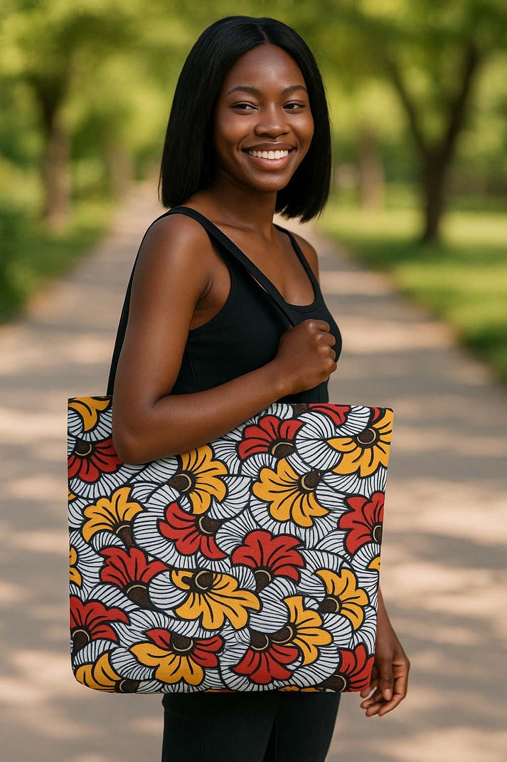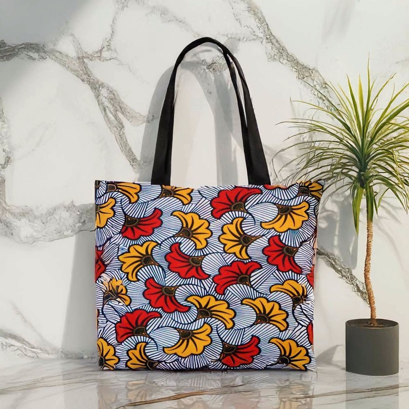 Take a risk and make a statement with our African Ankara Tote Bag! This bold and vibrant bag is not only a fashion statement with its beautiful flower design and Afrocentric style, but it also has a large capacity to carry all your essentials. Stand out in style and add a touch of adventure to your wardrobe. Product Description • 510 g/m2. Made from high-grade canvas. • Durable and roomy enough for your daily items. • Lightweight canvas tote bag with sturdy handle is easy to carry. • Perfect for shopping and carrying your essentials. Delivery Time This item will be processed within 3-7 business days (Excluding Weekends and Holidays). Once products ships it can take up to 15 Business days depending on your location. Out of Stock items can be requested by emailing us at [email protected] Care Instructions Machine wash cold inside out. Gentle cycle with mild detergent and like colors. Do not use bleach or fabric softener. Do not tumble dry. Hang to dry to ensure maximum shelf life. Iron inside out if necessary. Do not iron the print. Do not dry clean.