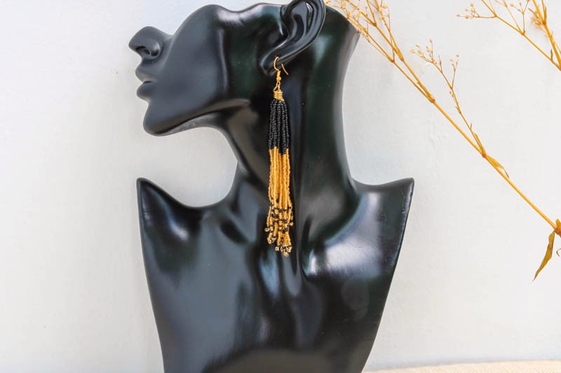 African Beaded earrings, Beaded Fringe earrings, Elegant earrings, Tribal earrings, Boho earrings