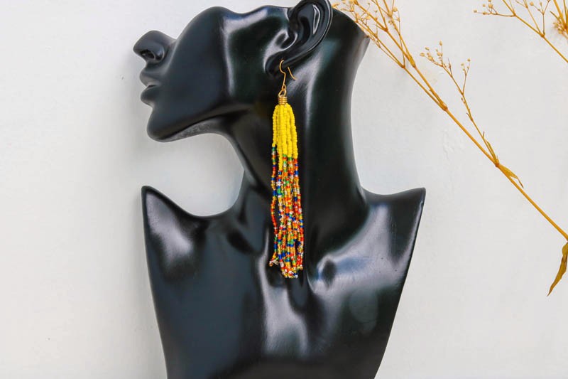 Jewelry Earrings Hanging drops earrings name_en: Yellow name_en: For Her name_en: Pierced Earrings name_en: Beads