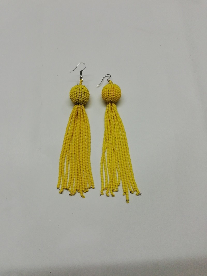 Beaded Tassel earrings, African earrings, Beaded earrings, Yellow earrings, Boho earrings, Gift for her, Fringe earrings