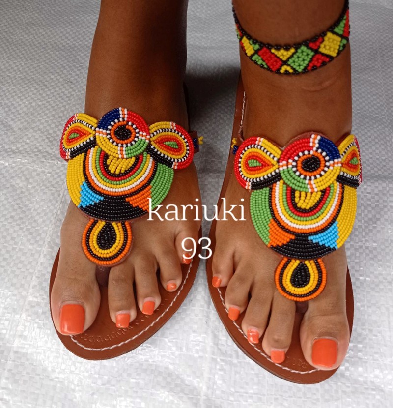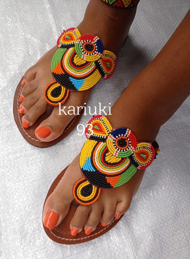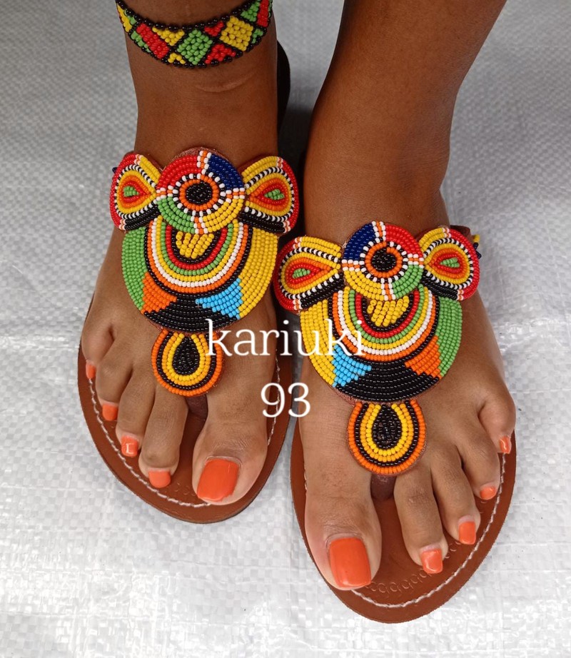 Shoes Women's Shoes Sandals, flip flops Color: Multicolour Gender: For Her Material: Beads Material: Leather