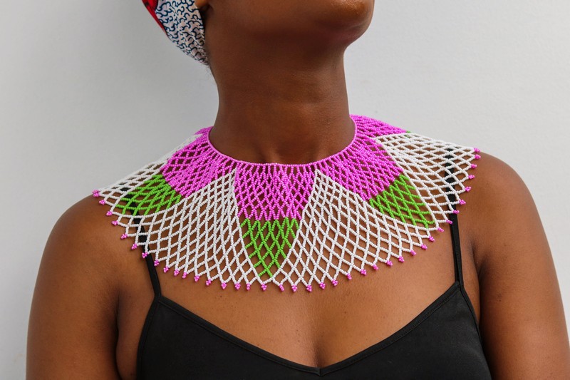 African Choker Necklace, Beaded wedding necklace, Beaded shawl necklace, Zulu necklace, Gift for her, Bridesmaid gift