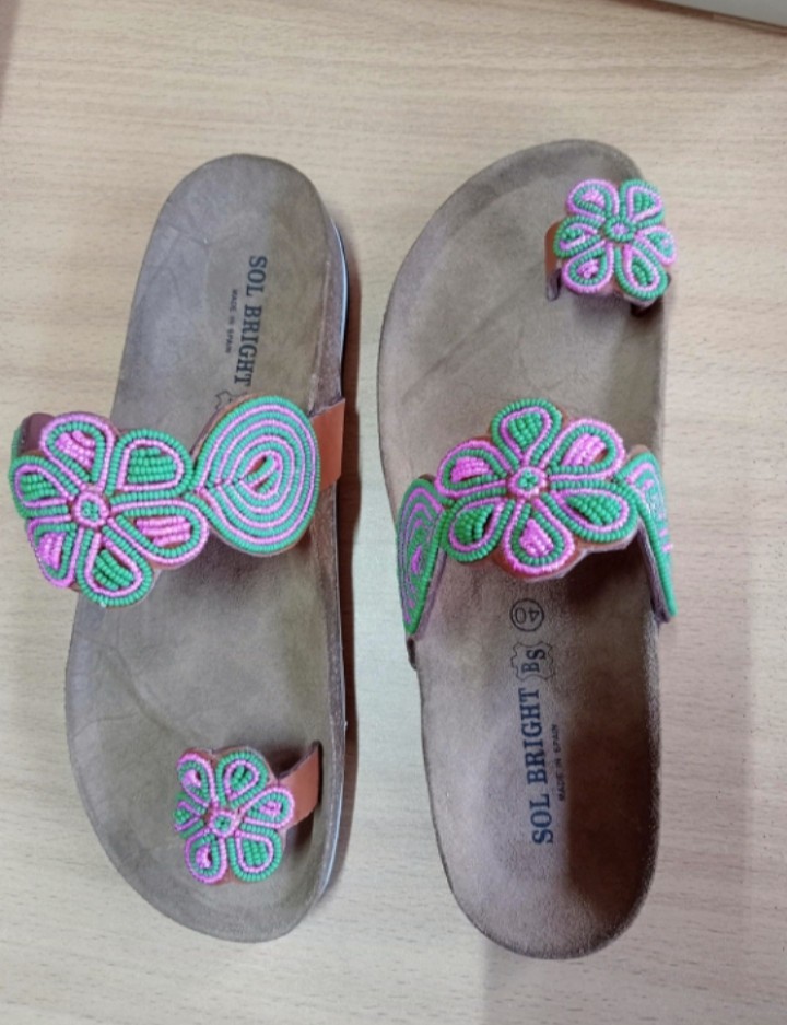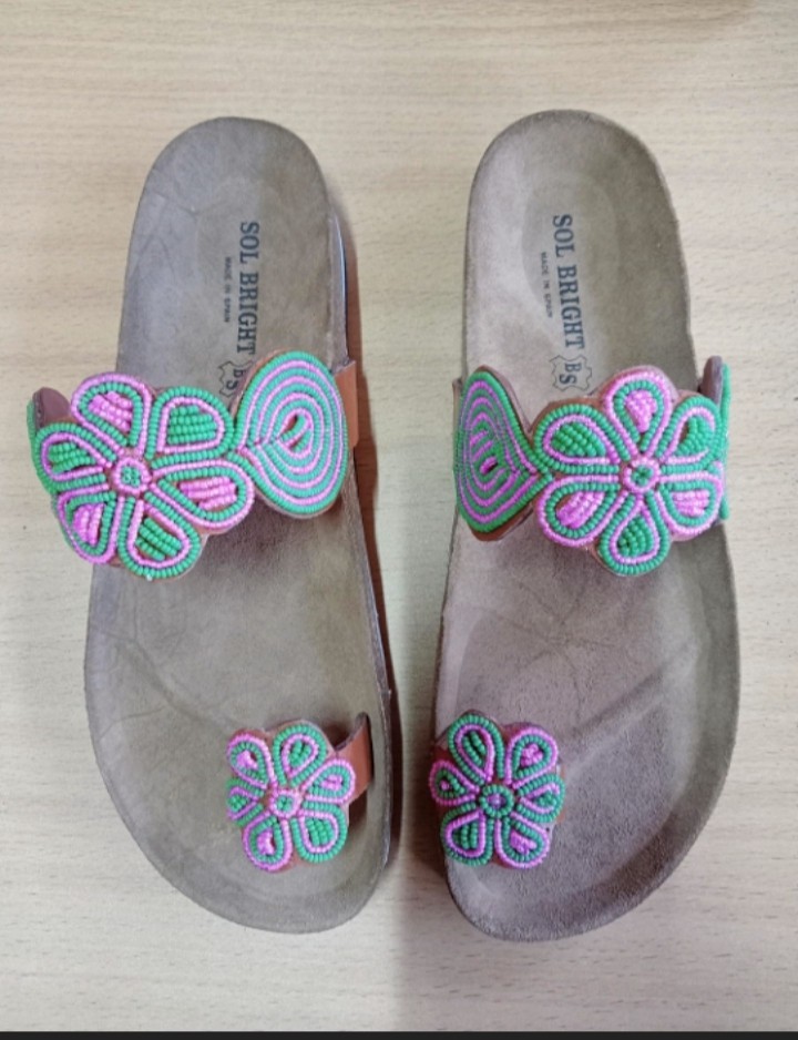 African beaded cork sole sandal, women shoes, leather sandal, wedding sandal, flip flop, women Boho, handmade sandals, summer sandal