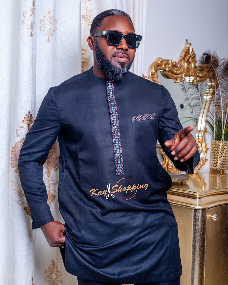 AFRICAN SUIT BLACK COLOR AFRICAN BLUE SUIT delivered with classic pants or with a drawstring for ease. Made with wool, a very comfortable fabric and suitable for all types of climates. For custom orders, please provide the following measurement details: Shoulder, Neck, Chest, Sleeve, Sleeve Circumference, Top Length, Pant Length, Waistband, Hip Circumference and Thigh Circumference. All sizes are available to order. FABRICS: Super 100's - 180's wool OCCASIONS: Wedding, Baptism, Workwear, Ceremonies, etc… TYPES: traditional-modern African costume with embroidery DELIVERY TIMES: Delivery anywhere in the world via DHL Express within 3-4 days after making. Delivery to Senegal the same day after preparation. Manufacturing time: 10 days PRODUCT CONDITION New African jacket. Made to measure and customizable on demand (Color, Fabrics, Embroidery, etc.) CLEANING AND MAINTENANCE Dry wash only Cufflinks sold separately