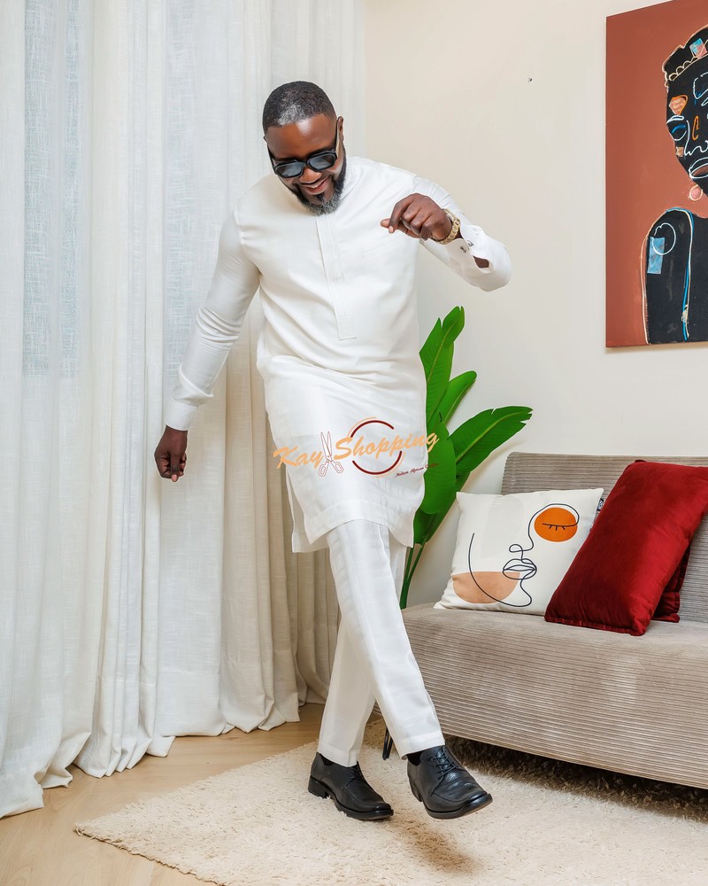 AFRICAN SUIT BLACK COLOR AFRICAN BLUE SUIT delivered with classic pants or with a drawstring for ease. Made with wool, a very comfortable fabric and suitable for all types of climates. For custom orders, please provide the following measurement details: Shoulder, Neck, Chest, Sleeve, Sleeve Circumference, Top Length, Pant Length, Waistband, Hip Circumference and Thigh Circumference. All sizes are available to order. FABRICS: Super 100's - 180's wool OCCASIONS: Wedding, Baptism, Workwear, Ceremonies, etc… TYPES: traditional-modern African costume with embroidery DELIVERY TIMES: Delivery anywhere in the world via DHL Express within 3-4 days after making. Delivery to Senegal the same day after preparation. Manufacturing time: 10 days PRODUCT CONDITION New African jacket. Made to measure and customizable on demand (Color, Fabrics, Embroidery, etc.) CLEANING AND MAINTENANCE Dry wash only Cufflinks sold separately