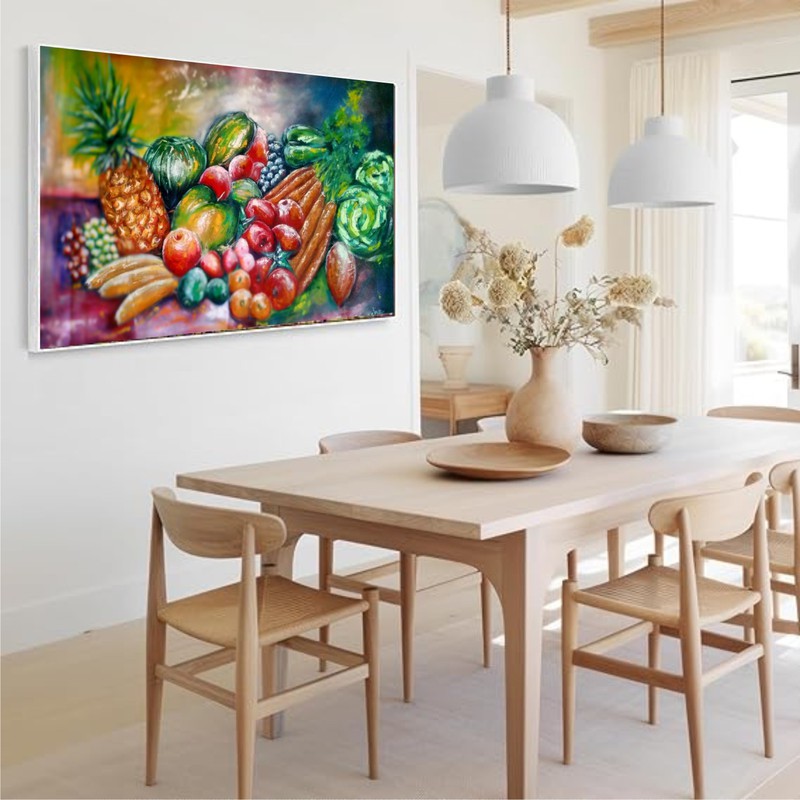Celebrate the vibrant colors and rich textures of African fruits with this hand-painted original oil on canvas by Artist Chembx. This masterpiece captures the freshness and beauty of nature’s bounty in bold, vivid detail—perfect for adding life and culture to any space.
