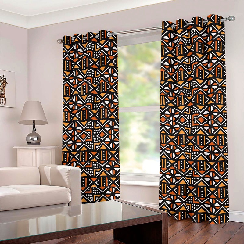 Bring a unique, African-inspired style to your home with our two-piece grommet curtain set featuring a traditional mudcloth print. This high-quality textile adds texture and a touch of culture to any space, and its grommet design ensures easy installation.