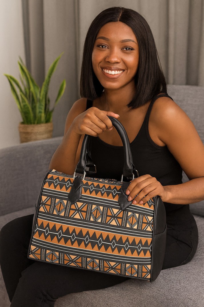 Elevate your style with our African Handbag Boston Geometric Afro Print. Handcrafted with traditional African prints, this bag adds a unique touch to any outfit. Made with durable materials and spacious enough for your everyday essentials, it's perfect for both casual and formal occasions.