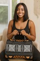 Enhance your style with our African Handbag Boston Mudcloth Geometric. Made from high-quality mudcloth fabric, it features a unique geometric design that adds a touch of culture to any outfit. Hand-crafted by skilled artisans in Africa, this bag is not only stylish but also supports sustainable and ethical practices.