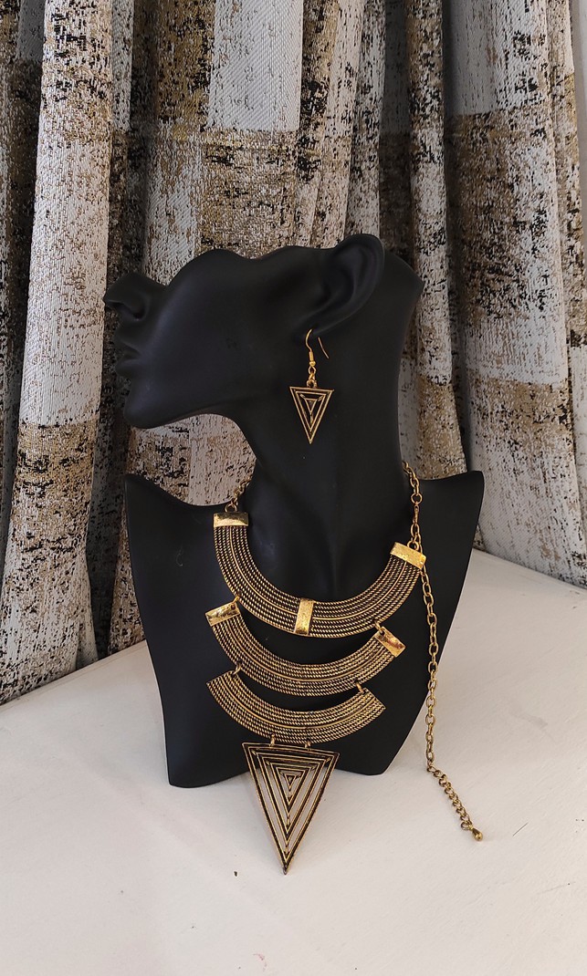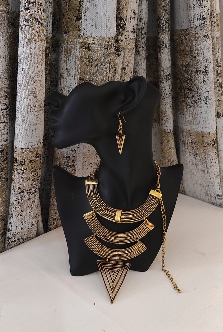 Add a touch of elegance and culture to your wardrobe with this stunning African-inspired necklace and earrings set.