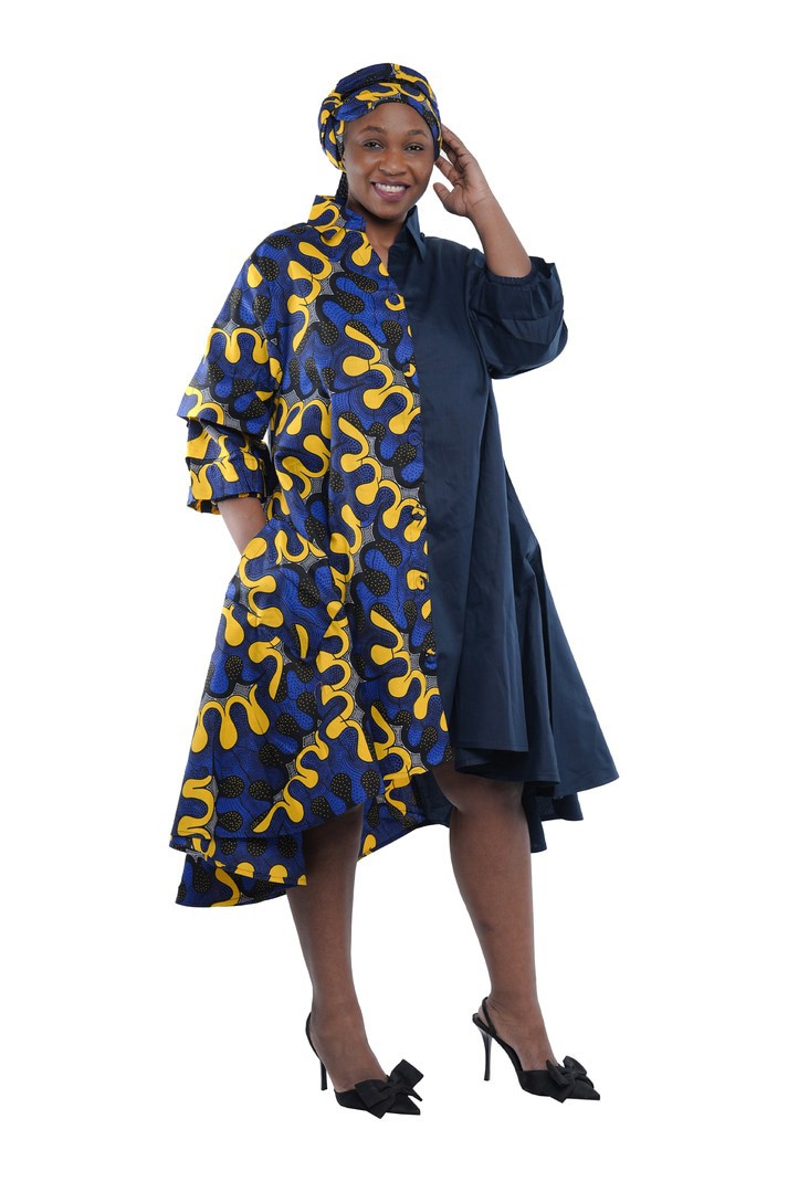 Made from 100% cotton fabric, the dress features 2 convenient pockets and a matching headwrap. The split down the middle design showcases a masterful selection of vibrant orange colors. Stand out from the crowd and embrace the culture with this stunning dress.