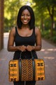 Crafted from high-quality African leather, this stylish travel bag features a striking mud cloth cowrie pattern. Perfect for any journey, it offers durability and unique cultural design. Travel in style with this authentic and versatile bag.