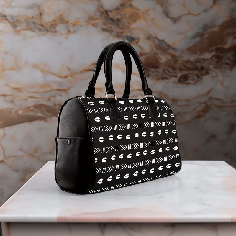 Elevate your style with our African Leather Handbag. The Boston Cowrie Print in elegant black & white offers a unique take on a classic design. Hand-crafted with genuine leather, this bag is both luxurious and durable. Stand out from the crowd and embrace the beauty and heritage of Africa.