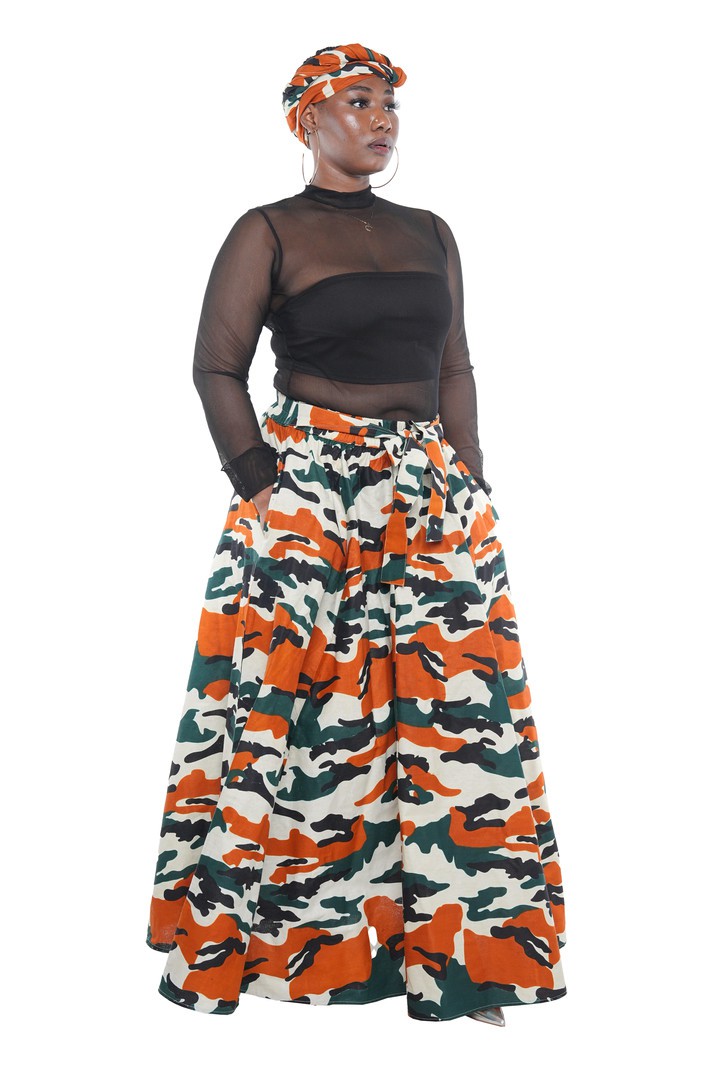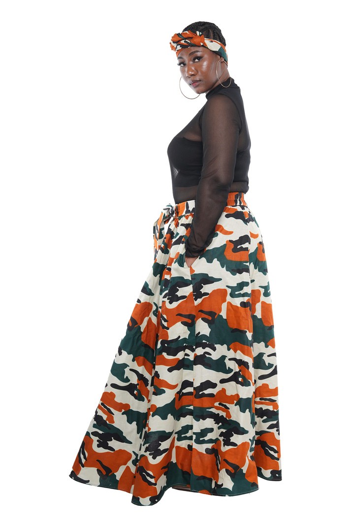 Upgrade your wardrobe with this stylish and practical camouflage maxi skirt – the perfect blend of fashion and function!