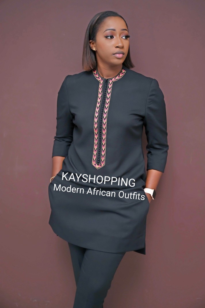 Modern African Outfit Comes With Top and Pants Modern African Outfit is an outfit that can be worn on any occasion, whether at work, meeting, wedding, appointment ceremony, etc. Some people call it "African costume" because of its originality and elegant tailoring style. Most of them are made with wool, linen and cotton, premium fabrics.