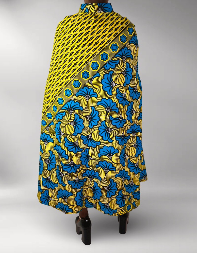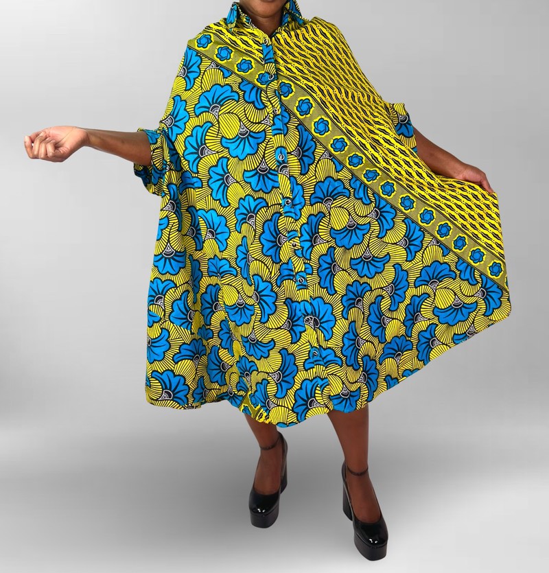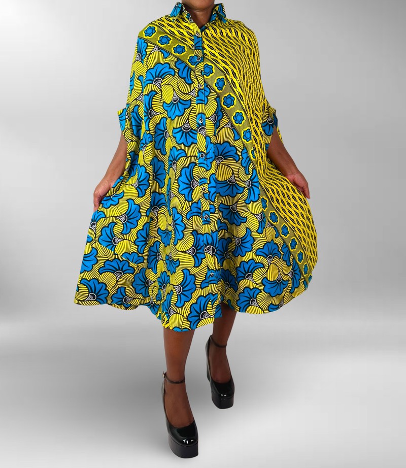 African Print Ankara Multicolor Floral Print Collared Button Front Cotton Dress