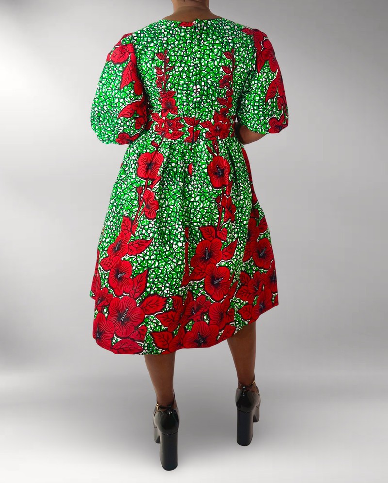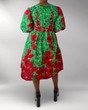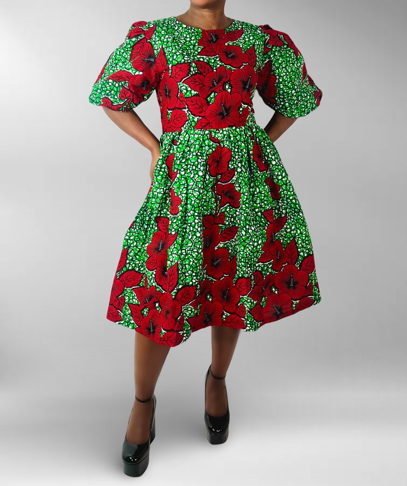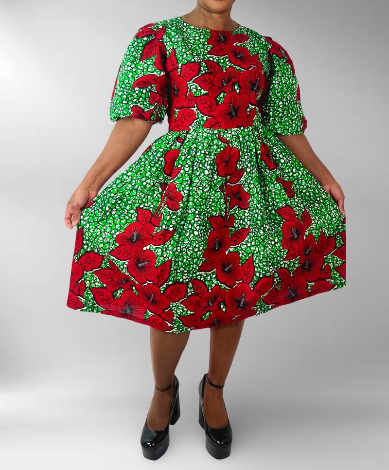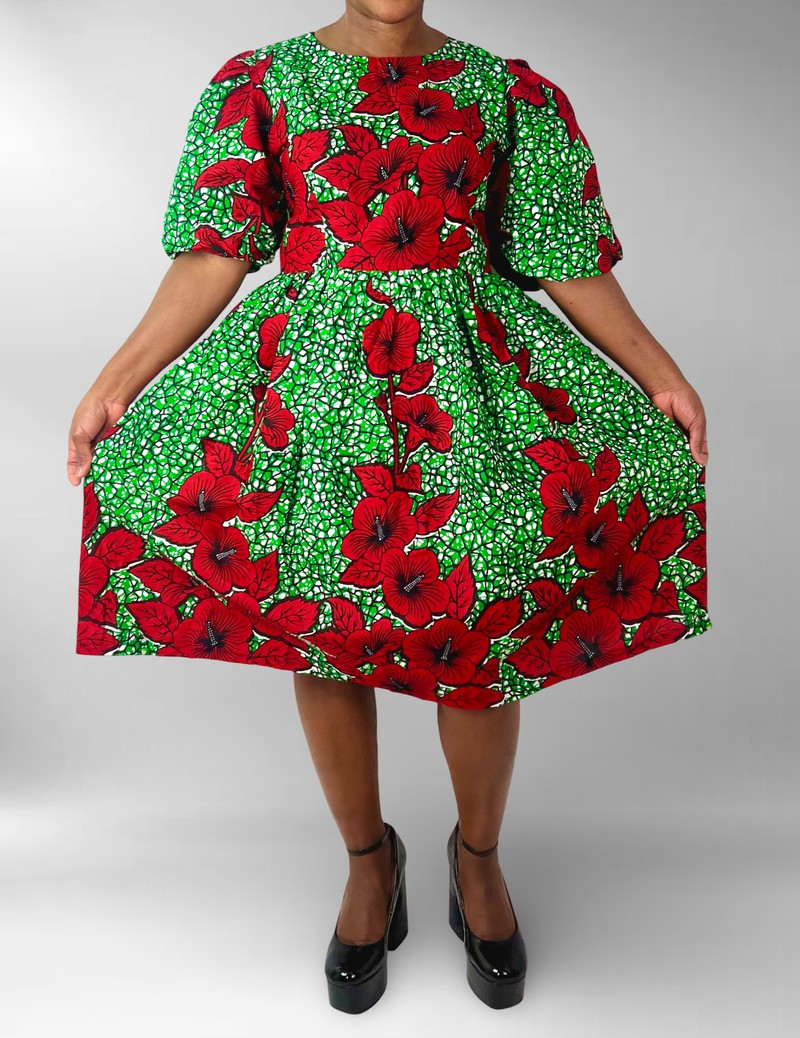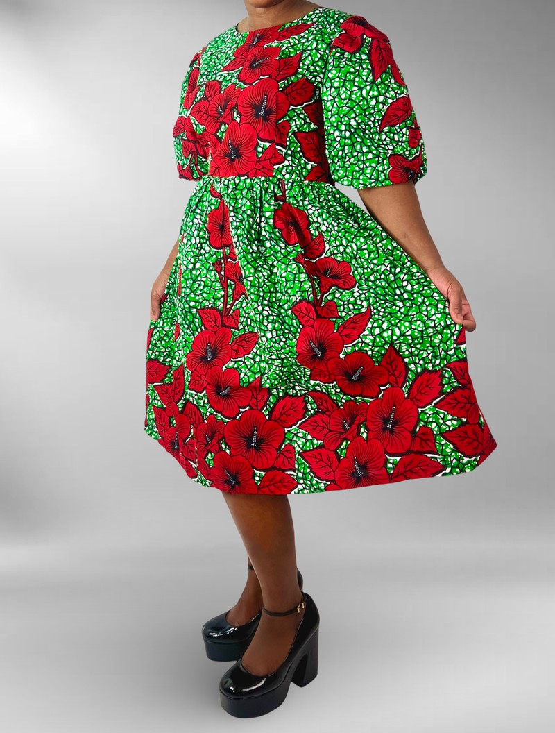 African Print Ankara Red and Green Multicolor Cotton Mini Babydoll Dress