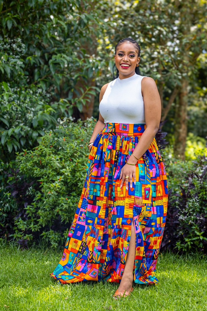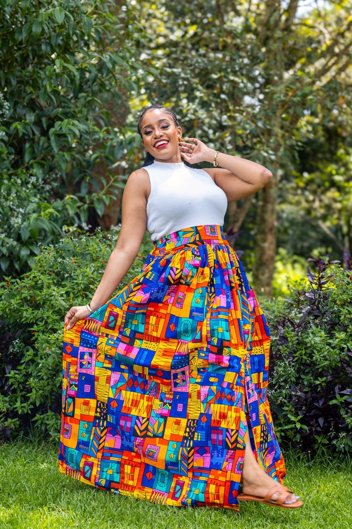 Turn heads this summer in our African Print Summer Cotton Maxi Skirt – the perfect blend of comfort, style, and vibrant culture.This long skirt is crafted from breathable cotton fabric, making it your go-to piece for warm weather days. Featuring a bold and colorful African print, this Ankara maxi skirt adds effortless flair to your wardrobe, whether dressing up for brunch, a casual day out, or a summer wedding. Designed with a flattering highwaist skirt silhouette, the elastic waistband ensures a comfortable, flexible fit for all body types. And yes – it comes with deep, functional pockets for added convenience and style. Pair it with a fitted top or a crisp blouse, and let your outfit do all the talking. - The model is wearing a UK 14 (US XL). She is 5'6/ 168 cm tall. - The skirt is 47 inches long. The length can be adjusted on request. To request length adjustments, key in your length/ height measurements in the Personalization box. - The skirt features a slit on the left side. CARE INSTRUCTIONS - Hand-wash with cold water and hang to dry. - Machine wash on a gentle cycle using cold water - Tumble dry on low heat. - Iron inside out on low to medium heat.