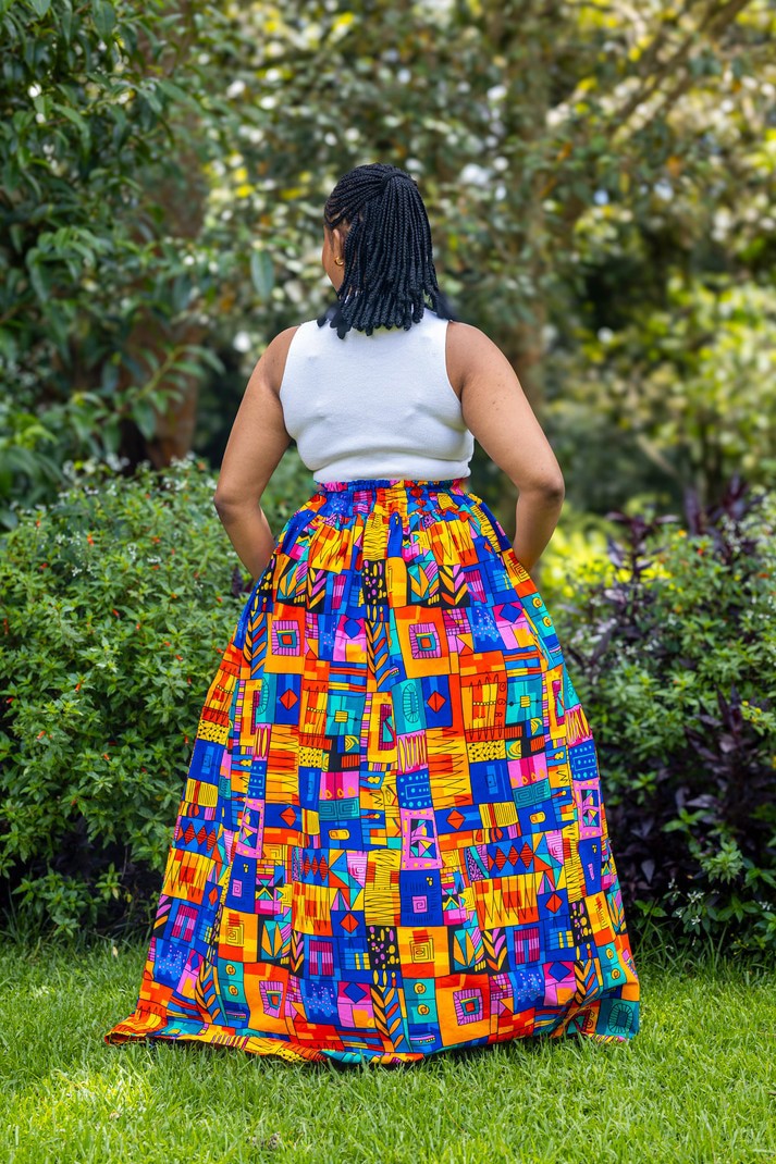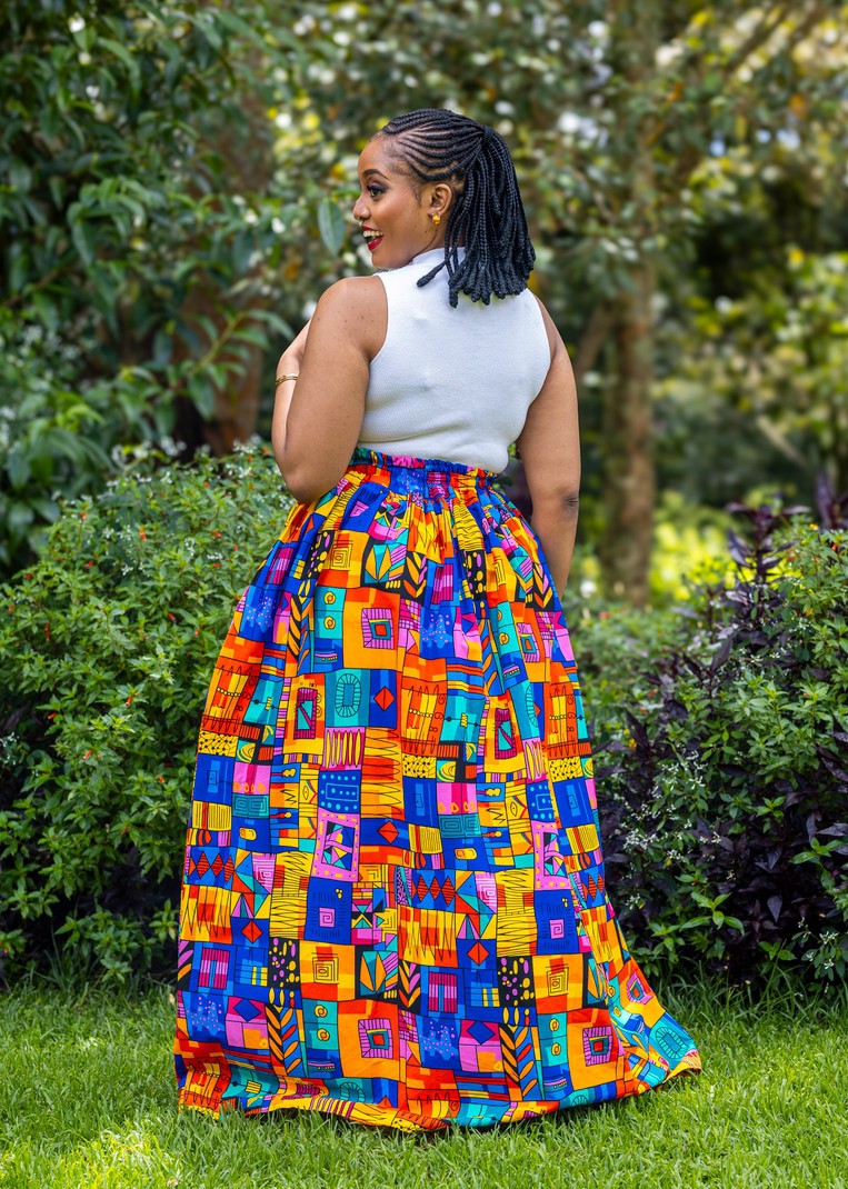 Turn heads this summer in our African Print Summer Cotton Maxi Skirt – the perfect blend of comfort, style, and vibrant culture.This long skirt is crafted from breathable cotton fabric, making it your go-to piece for warm weather days. Featuring a bold and colorful African print, this Ankara maxi skirt adds effortless flair to your wardrobe, whether dressing up for brunch, a casual day out, or a summer wedding.