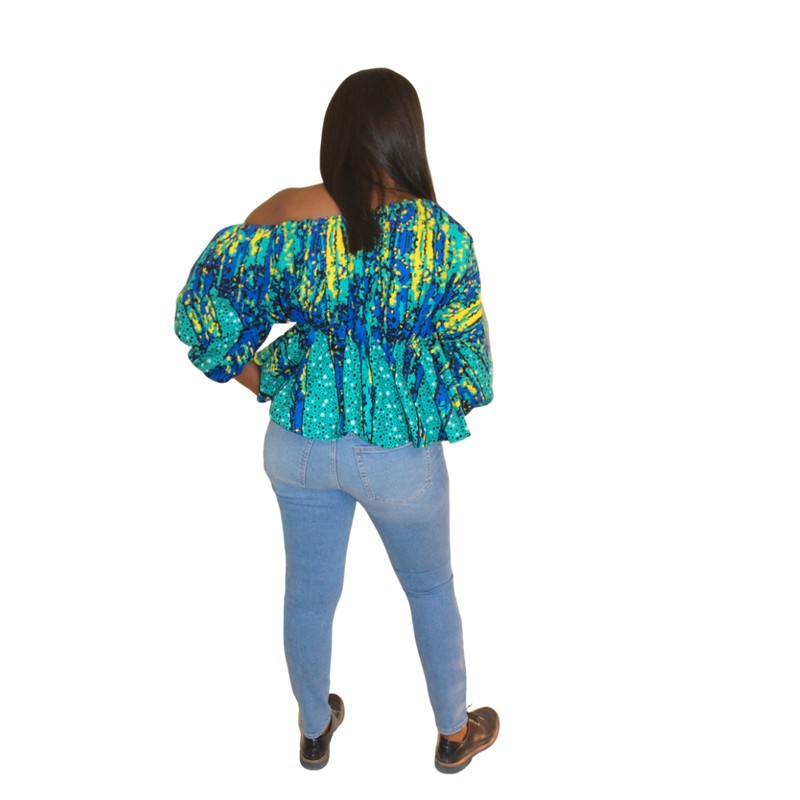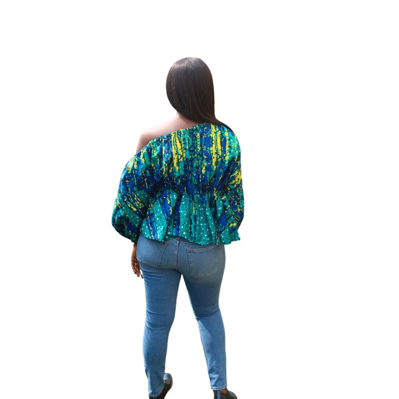 Vibrant Off one Shoulder Sleeve African Print Top with puff sleeves