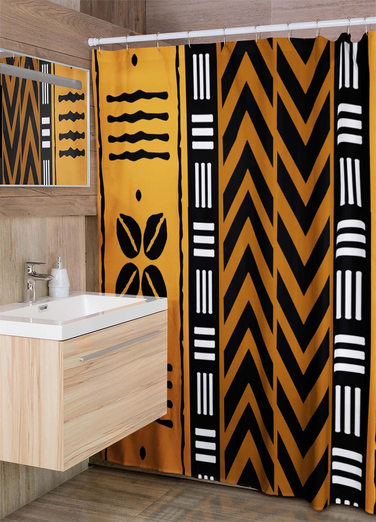 Elevate your bathroom decor with our African Shower Curtain! The bold orange tribal pattern adds an adventurous touch to any bathroom. Embrace the risk and let this unique curtain be the focal point of your space. Experience a new level of style and exhilaration with this statement piece! Product Features = Designed for standardized bath tubs, fitted with C-shaped curtain hooks, = Tough durable waterproof polyester fabric = Prevents water from splashing out of the shower stall. = One-side print using heat dye sublimation technique for long-lasting effects. = Both functional and decorative. = Vibrant colors = CURTAIN SIZE - W 36"x H 72"-91cmx182cm Delivery Time This item will be processed within 7-15 business days (Excluding Weekends and Holidays). Once products ships it can take up to 15 Business days depending on your location. Out of Stock items can be requested by emailing us at [email protected]