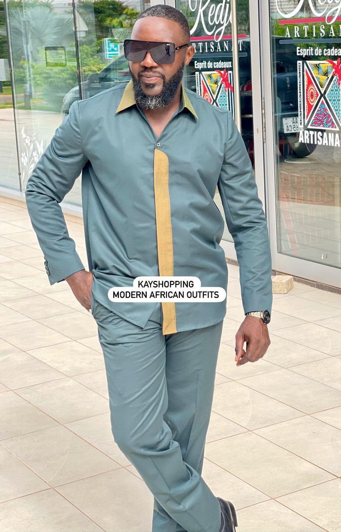 African Costume Green Shirt sewn with wool. Shirt model worked with woven loincloth. Production time 15 days