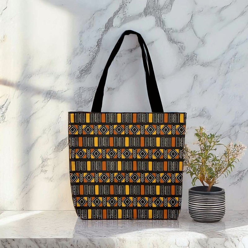 Embrace your inner adventurer with our African Traditional Tote Bags! Designed with bold ethnic fashion, these bags boast a large capacity for all your daring journeys. Stand out and make a statement with these unique and eye-catching totes! Product Description • 510 g/m2. Made from high-grade canvas. • Durable and roomy enough for your daily items. • Lightweight canvas tote bag with sturdy handle is easy to carry. • Perfect for shopping and carrying your essentials. Delivery Time This item will be processed within 3-7 business days (Excluding Weekends and Holidays). Once products ships it can take up to 15 Business days depending on your location. Out of Stock items can be requested by emailing us at [email protected] Care Instructions Machine wash cold inside out. Gentle cycle with mild detergent and like colors. Do not use bleach or fabric softener. Do not tumble dry. Hang to dry to ensure maximum shelf life. Iron inside out if necessary. Do not iron the print. Do not dry clean.