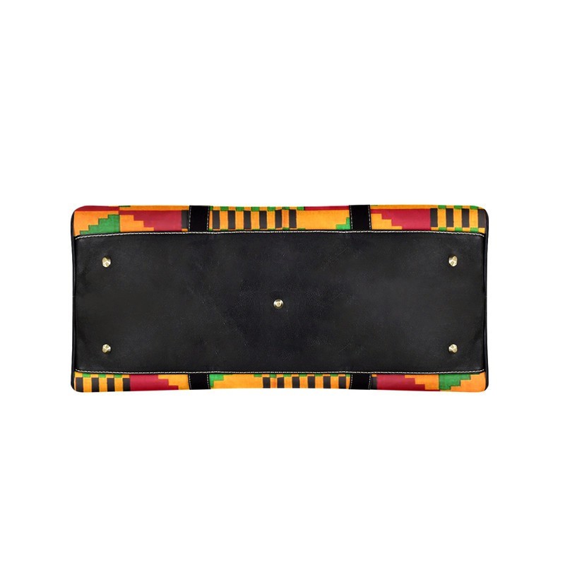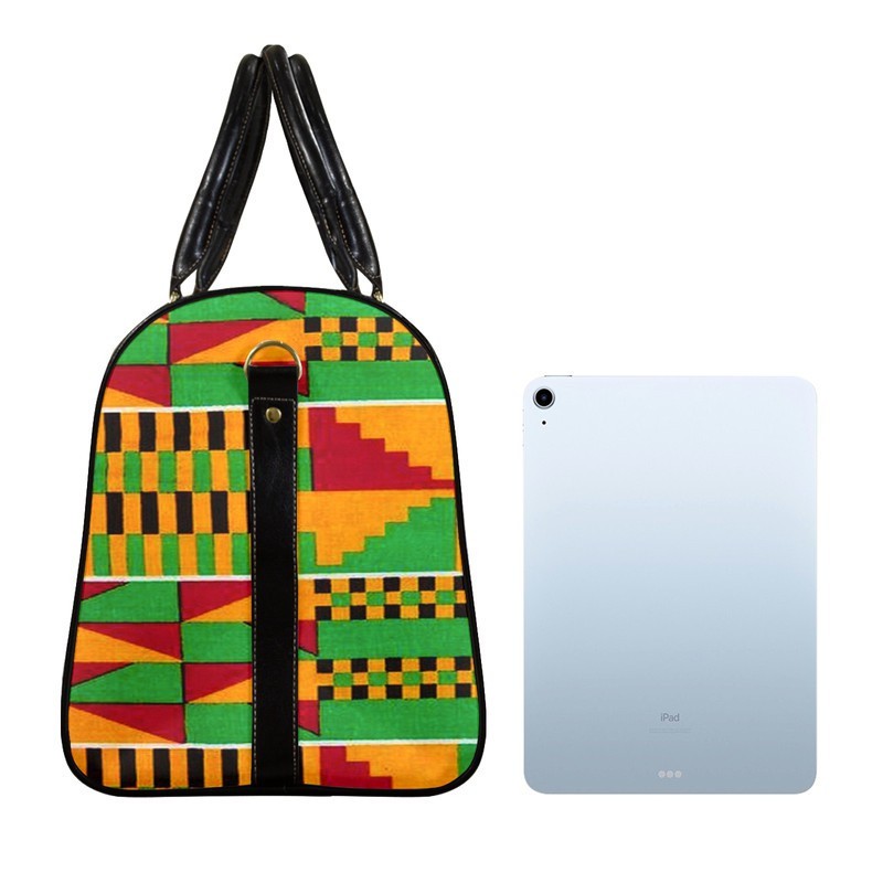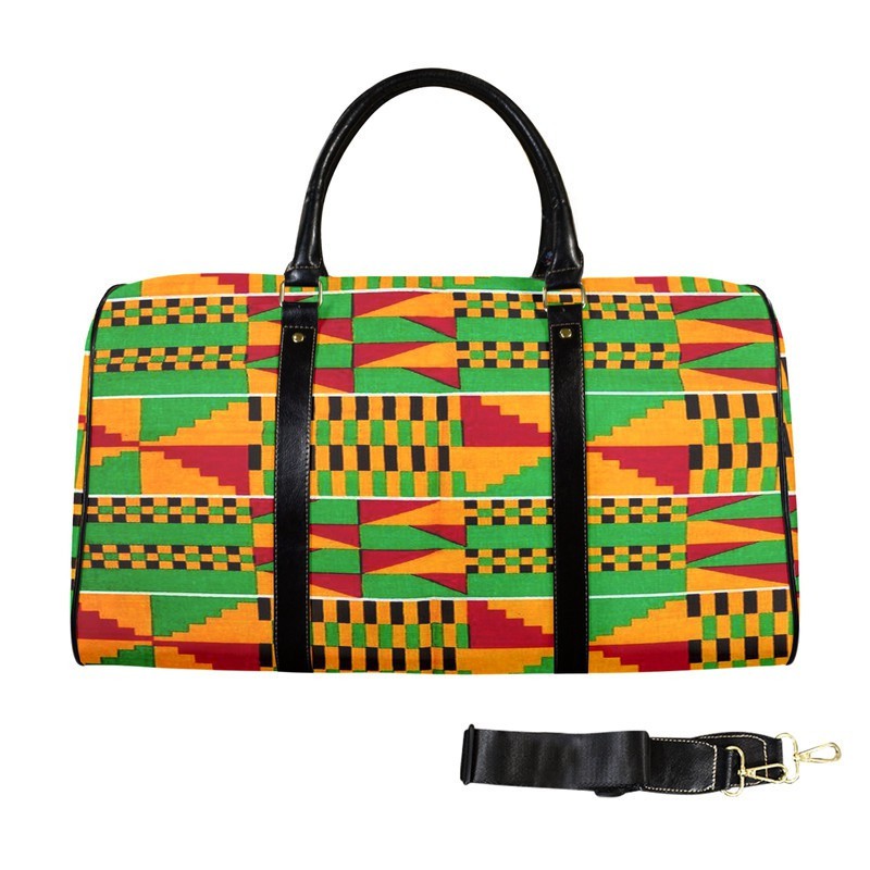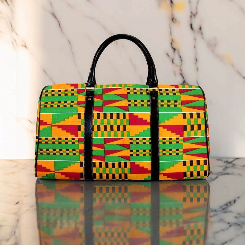 Take a stylish trip with our African Travel Bag! Made of durable leather and adorned with a colourful Kente print, it's perfect for your next adventure. Stand out from the crowd and embrace your wanderlust with this unique and eye-catching bag. Bon voyage! (Note: plane tickets not included.)
