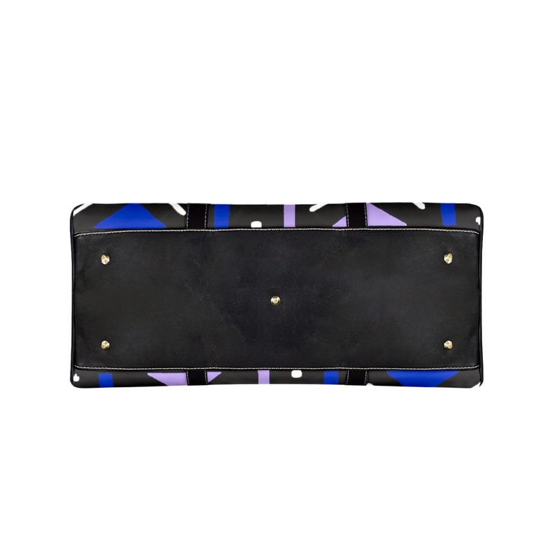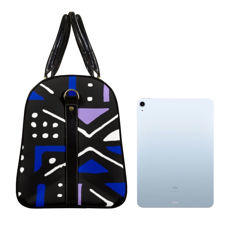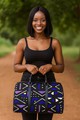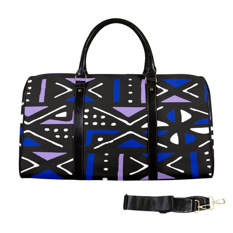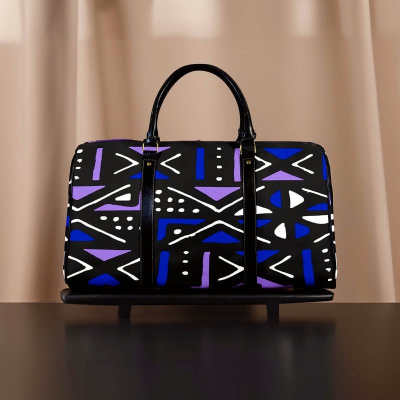 Make a statement while traveling with this African-inspired leather bag featuring a unique mud cloth local print in vibrant multicolors. Stand out from the crowd and bring a touch of culture to your journey. Perfect for adventurers and fashionistas alike! (Only 1 available!)