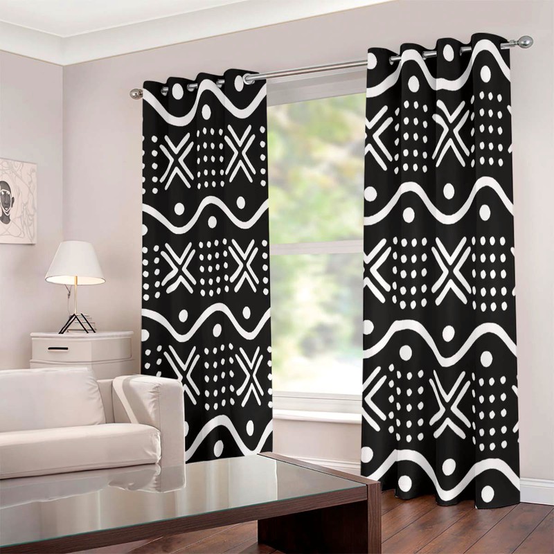 Elevate your home decor with these African-inspired window curtains featuring a striking black and white design. These grommet curtains add a bold touch to any room and provide the perfect amount of natural light. Bring a sense of adventure and boldness into your home with these two-piece curtains. Product Features = Designed for standardized bath tubs, fitted with C-shaped curtain hooks, = Tough durable waterproof polyester fabric = Prevents water from splashing out of the shower stall. = One-side print using heat dye sublimation technique for long-lasting effects. = Both functional and decorative. = Vibrant colors = CURTAIN SIZE - (W)107cm x (H)160cm(42.1"x63") Delivery Time This item will be processed within 7-15 business days (Excluding Weekends and Holidays). Once products ships it can take up to 15 Business days depending on your location. Out of Stock items can be requested by emailing us at [email protected]