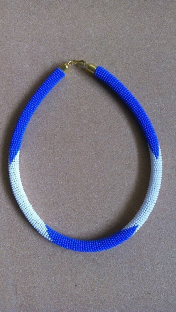 African Zulu beaded necklace, Statement necklace, Her christmas gift, Rope necklace