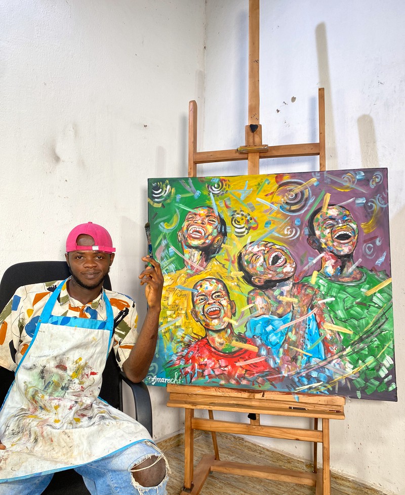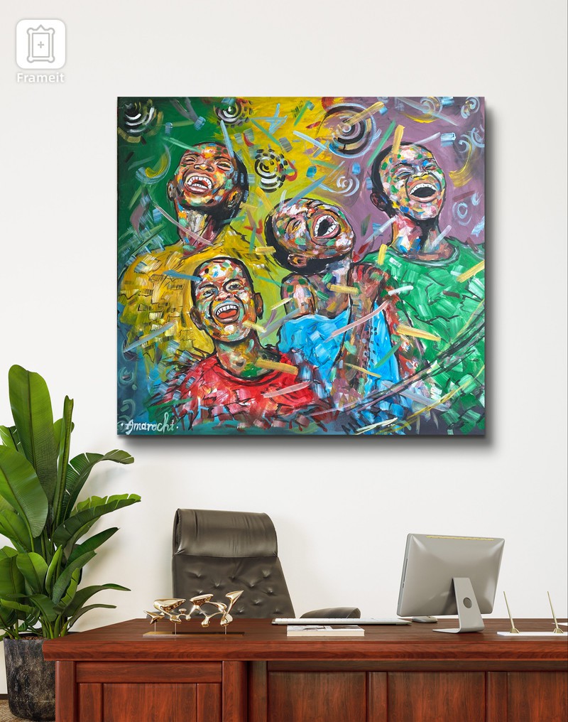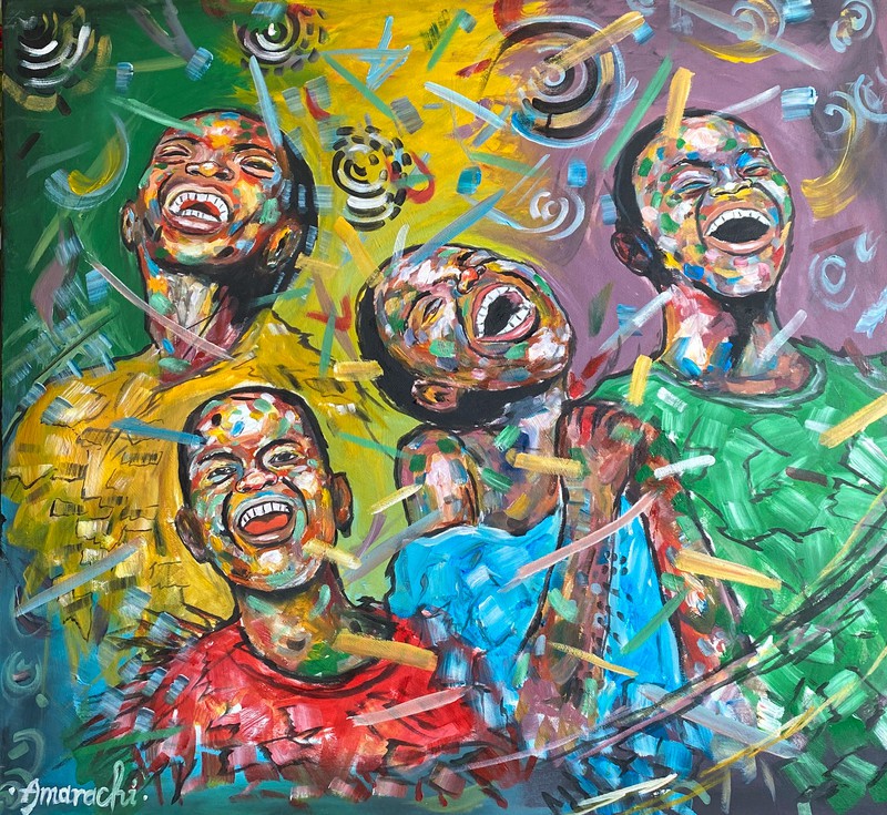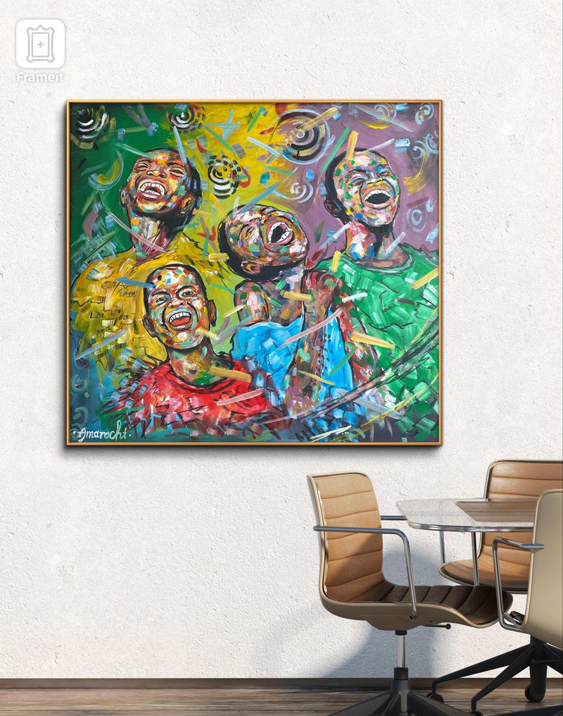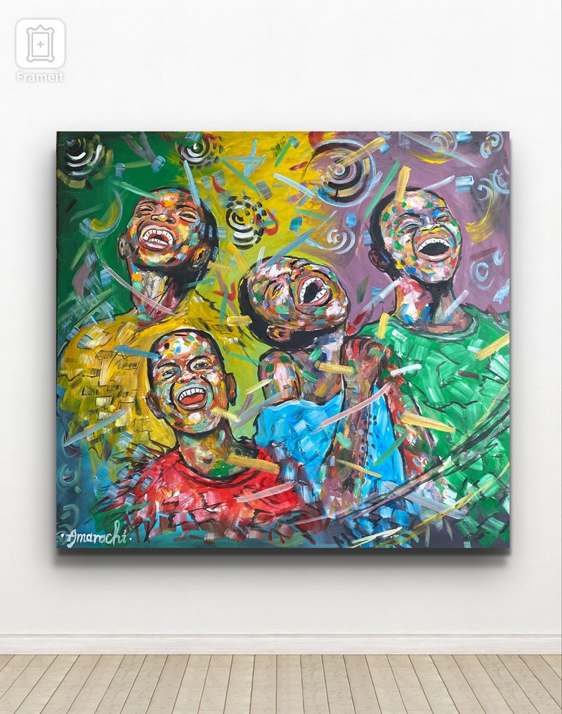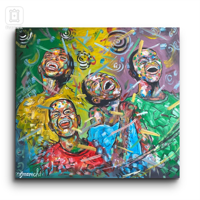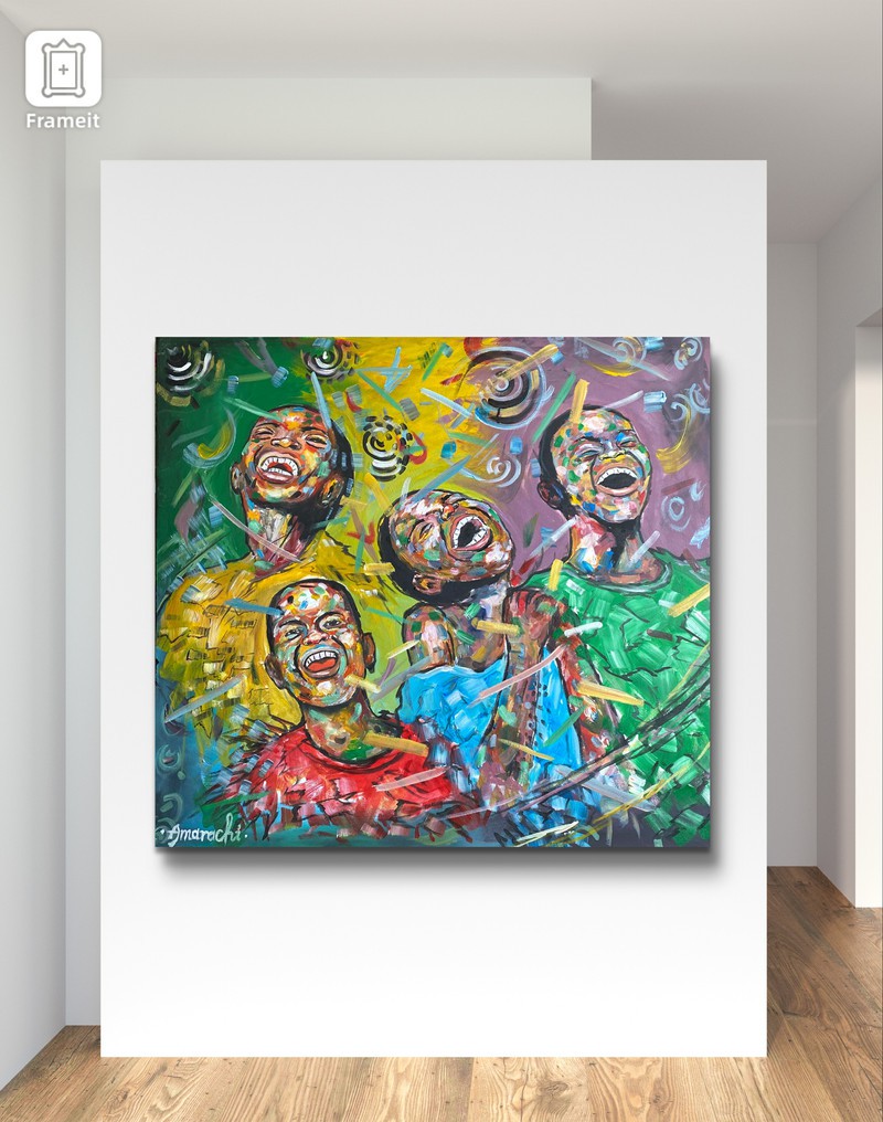 . This art piece conveys a valuable lesson about maintaining happiness in the face of adversity. As depicted in the painting,the combination of colours on their face represents various life challenges,yet they choose to remain joyful ,believing that better days lie ahead.