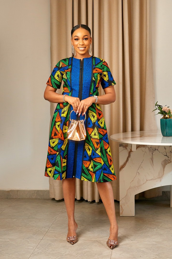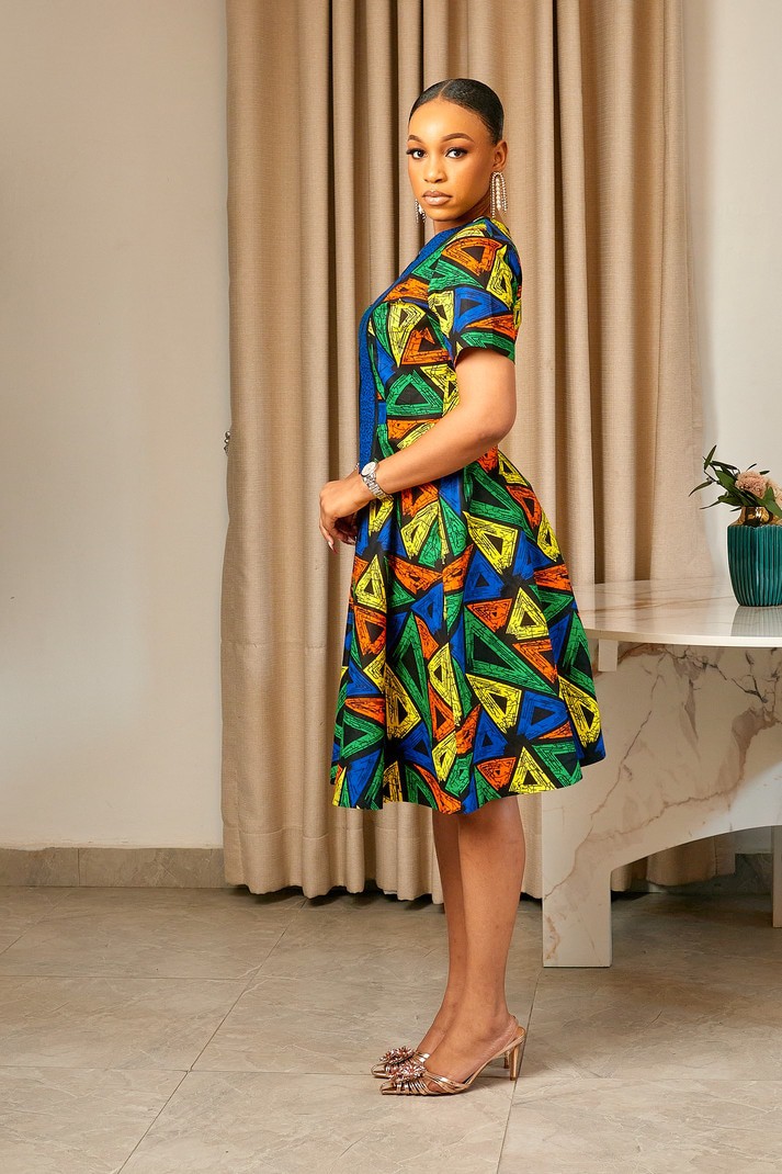 AKEYO AFRICAN PRINT MIDI DRESS DETAILS: